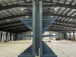 To meet these needs, Trimet Storage provided a single-sided cantilever system with a 21’-4’’ column height.